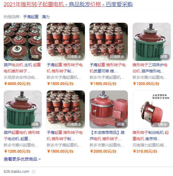 (百度愛采購搜索得出2021年錐形轉(zhuǎn)子起重電機價格)